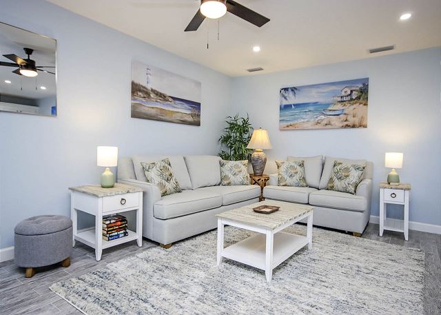 Sleeps 6, Sleeper sofa is in the living room.