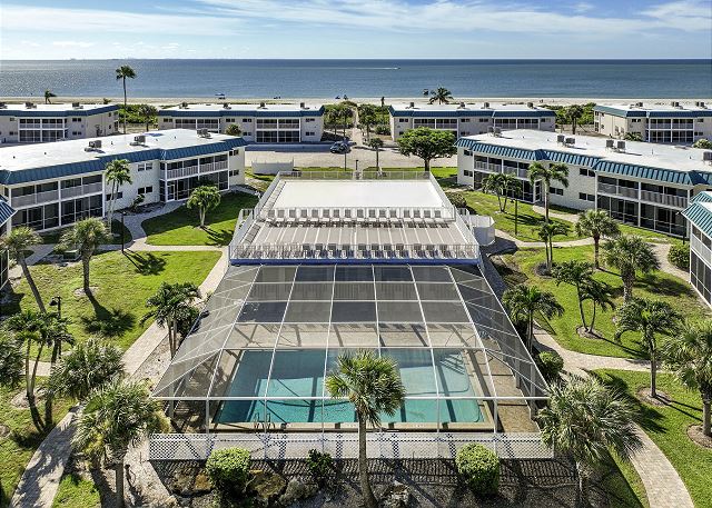 Resort-style amenities include a screened-in heated outdoor pool, sun deck, shuffleboard, tennis and pickleball courts, grilling and picnic area, filtered water and ice station and a new fitness center. For added convenience, there’s an on-site rental office staffed Monday through Saturday to assist you. Bike rentals nearby make exploring the island easy.