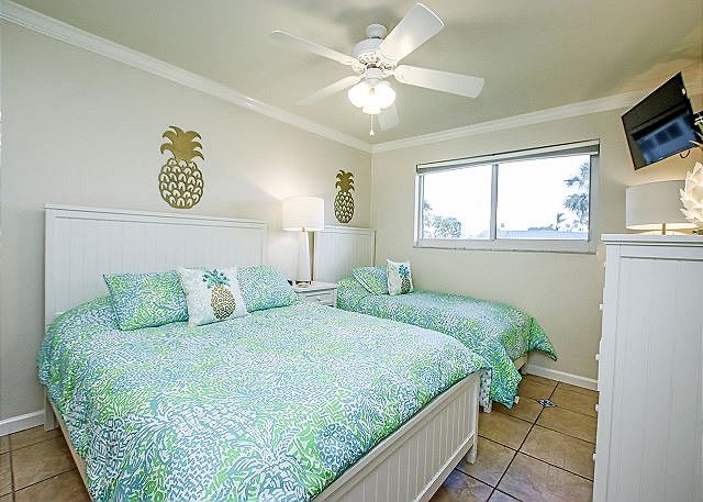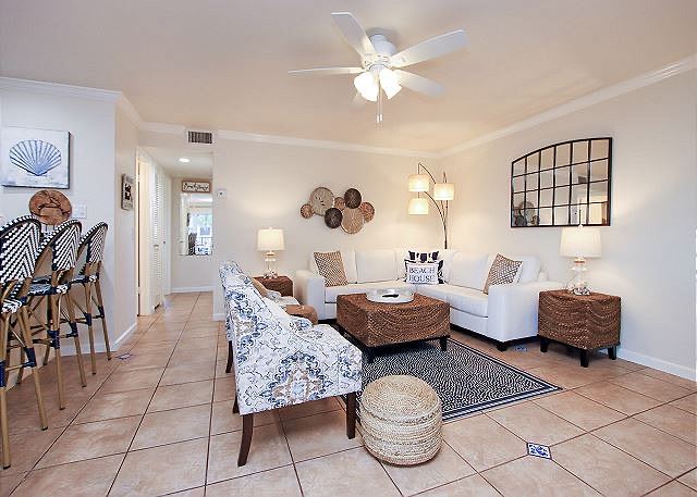 Sanibel Arms West perfectly fits you or your family with our 104 uniquely decorated and independently owned premium condominiums. Each fully furnished home away from home features a full kitchen, spacious living room, washer and dryer, and two lanais. It has resort-style amenities, including bike rentals nearby, tennis and pickleball courts, a grilling area, a sun deck, and a fitness room. With beautiful sunshine, brilliant blue skies, gentle waves, our pristine, private Gulf of Mexico beaches — all yours to enjoy, and home to some of the best shelling in America. Or opt for the comfort and peace of Sanibel Island’s only screened-in outdoor resort pool, with an on-site rental office.