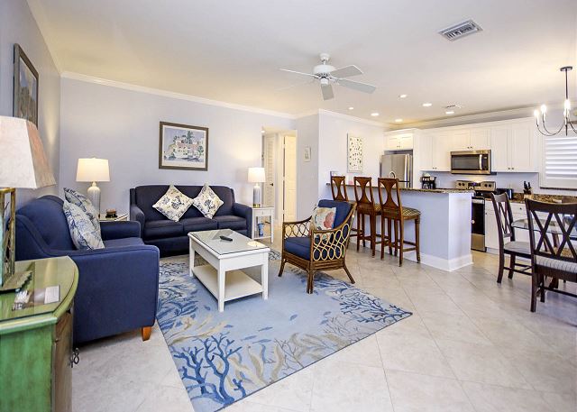 Freshly renovated after Hurricane Ian, this second-floor corner condo is a bright, stylish getaway. The 2-bedroom, 2-bath retreat has been completely refreshed with new bathrooms, updated décor, lighting, furnishings, and fresh paint throughout.